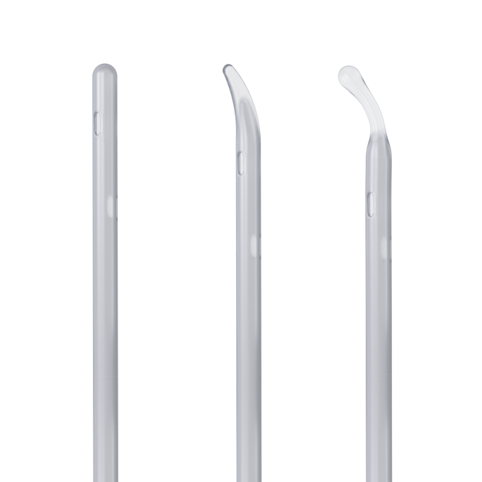- Available in two catheter tip variants: Nelaton – soft rounded tip, Tiemann/Coudé – slightly curved/tapered tip.