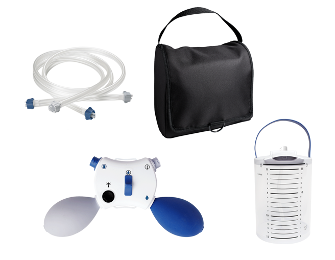 The two hand pumps on the control unit make it easy for you to pump and control the inflation of the balloon as well as the water instillation.